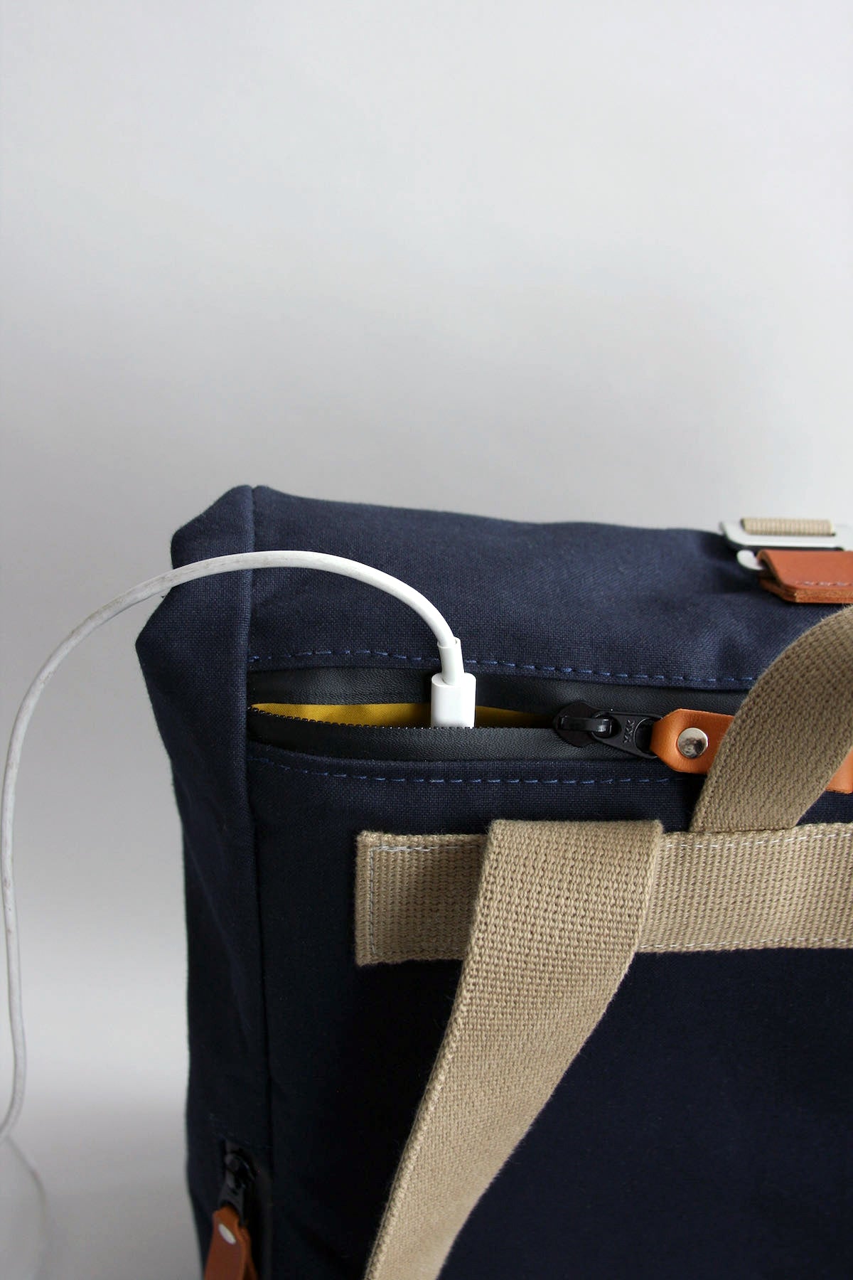 SAMPLE — perfect condition LARGE sized Batch 2 bag with veg-tanned leather accents; was used for photos.